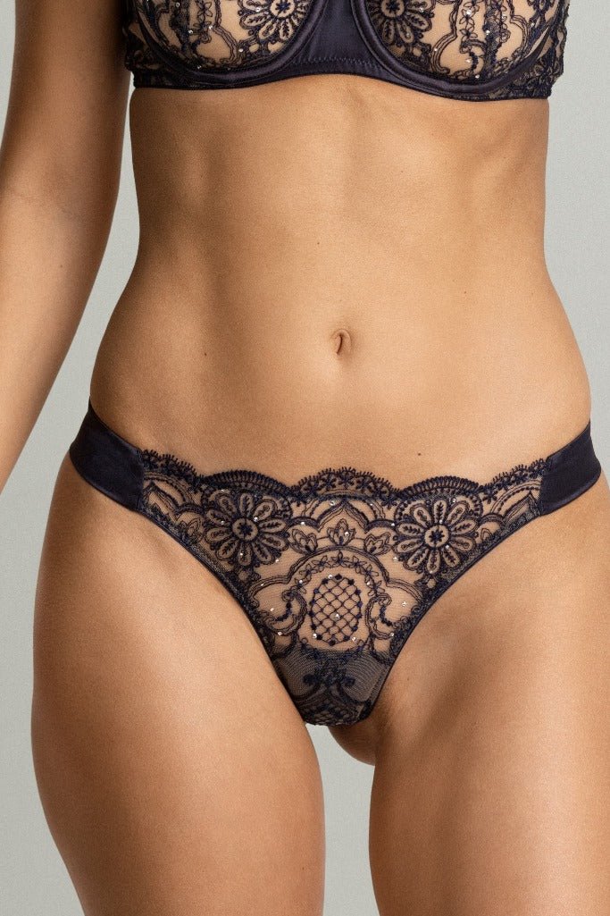 Swarovski Crystals Embellished Thong in Deep Bleumarine