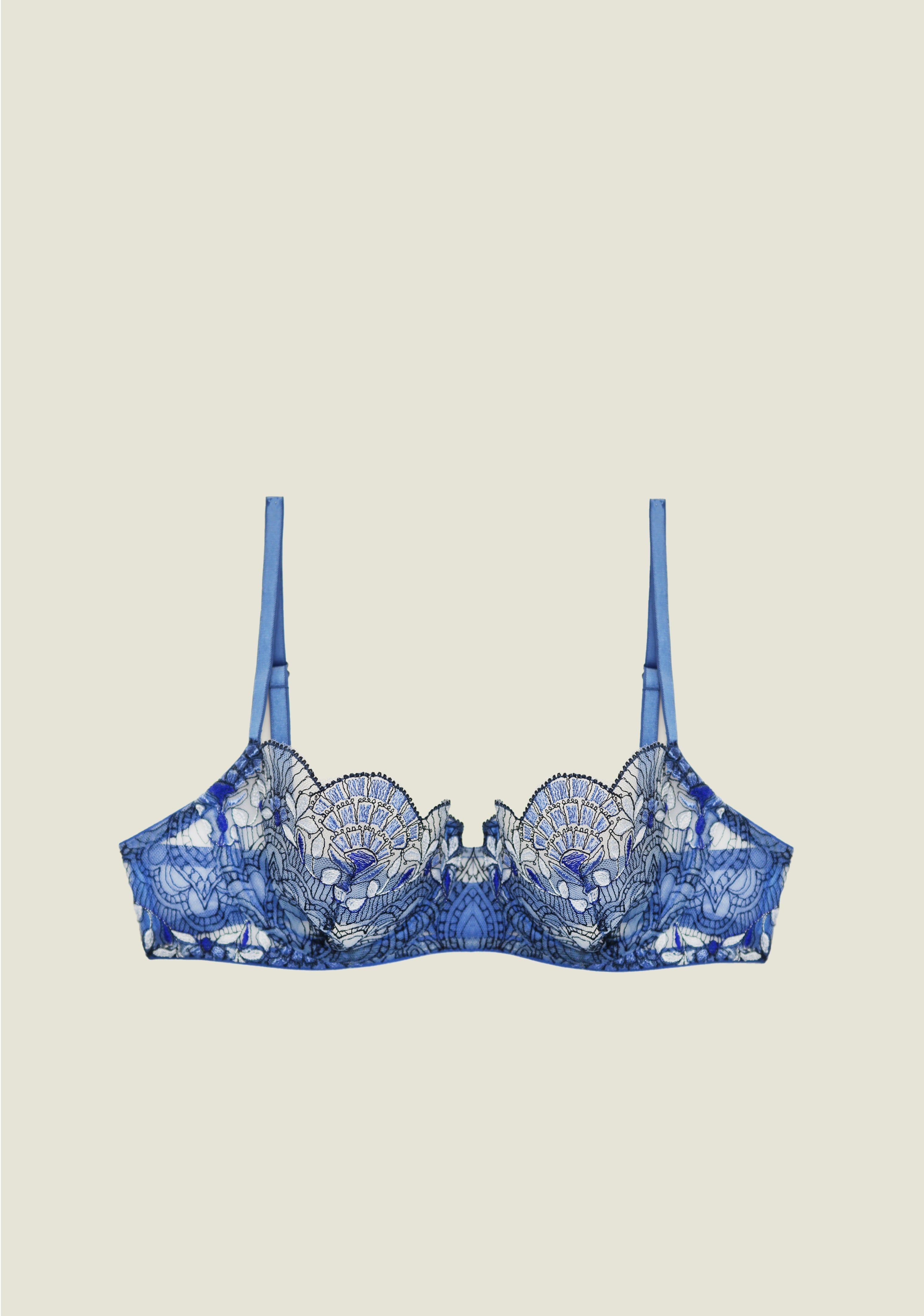Adorn yourself with the ethereal charm of the Venetian Glass Balconette Bra, its delicate blue hue evoking the serene beauty of glistening Venetian chandeliers, promising a touch of timeless elegance.